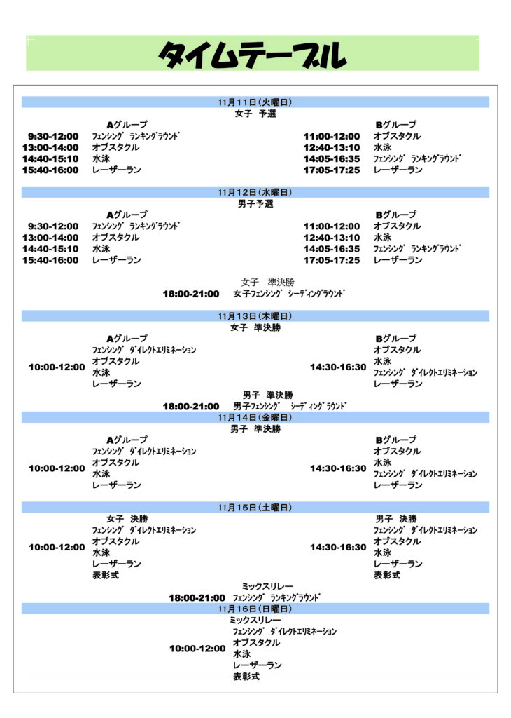 大会スケジュール一覧